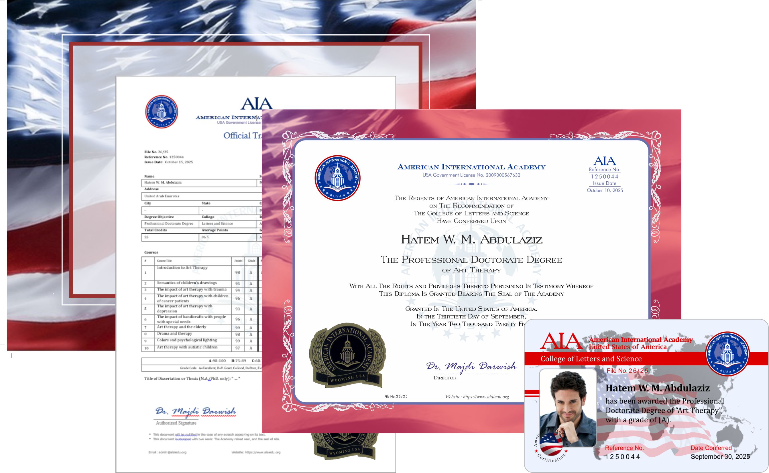 American International Academy adult degree programs merge the best of the two leading higher education systems of the world: Europe and the United States of America. AIA distance learning degree programs follows the current higher education guidelines set forth by the European Union (European Credit Transfer System [ECTS]) as well as the USA (Generally Accepted Accrediting Practices [GAAP]).